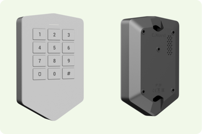 Клавиатура с 12 кнопками, индикацией состояния с помощью двухцветной светодиодной полоски и речевым информатором в комплекте. Без подсветки клавиш. Принцип работы аналогичен клавиатуре K14-LED.