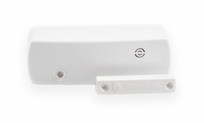 Магнитоконтактный датчик для установки на двери, окна, другие конструктивные элементы. Передает сообщения по двунаправленному каналу связи в диапазоне частот 433,05—434,79 МГц. Имеет резервный источник питания.